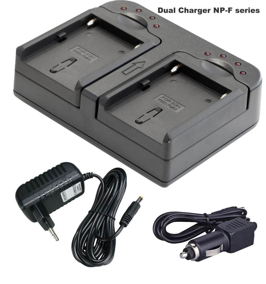1x Dubbele batterijlader voor 2 Li-ion batterijen NP-F serie